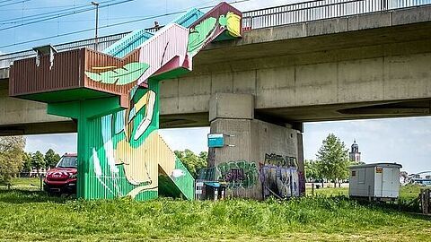 Langs de IJssel bij de spoorbrug (bereikbaar via het voetgangersbruggetje)