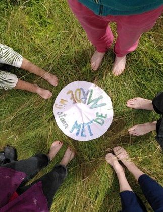 In een kring met mensen samenkomen, in stilte.
